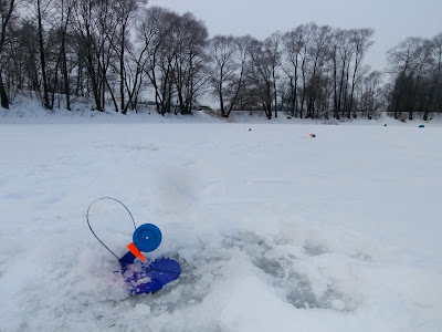 Побегав по лункам и не заработав поклевок около 12-30, решил попробовать переместиться на Псел в районе "Эпицентра".